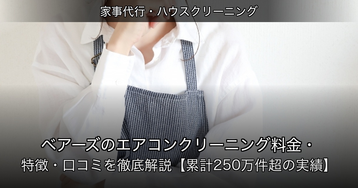 ベアーズ(株式会社ベアーズ)は、家事代行・ハウスクリーニングサービスの老舗として知られる会社で、累計サービス提供件数は250万件を超えています。エアコンクリーニングはそのハウスクリーニング部門のサービスのひとつで、徹底した分解洗浄を特徴とします。エアコン内部のカビやホコリを高圧洗浄機で除去し、サービス終了後には30分以内にフォローコールが入るなど、アフターフォローの充実も評価されています。「エアコンをつけたら臭いが気になる」「噴出し口にカビが見える」「エアコンの効きが悪くなった」などのお悩みがある方に適したサービスです。