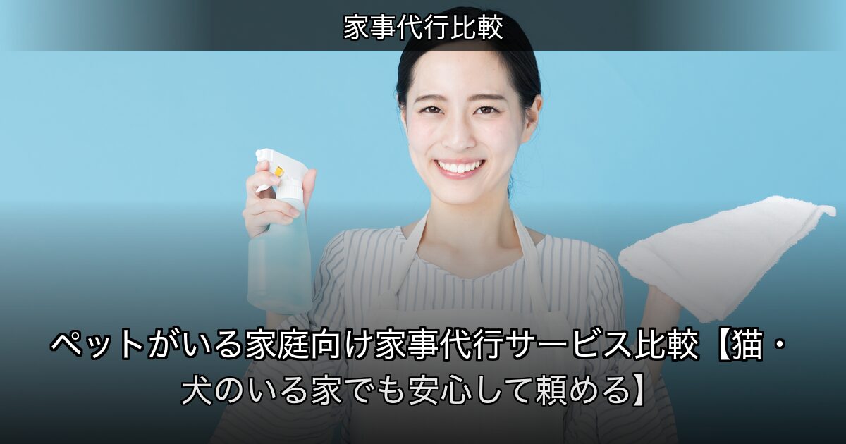 「ペットがいるから家事代行を頼みにくい」と感じている方は多いと思います。猫・犬が在宅中にスタッフが入ることへの不安、ペットの毛の掃除、ペット臭の対処など、ペットのいる家庭特有の悩みがあります。本記事では、ペット同伴OKのサービスやペット慣れしたスタッフがいるサービスを比較します(2025年4月時点参照)。