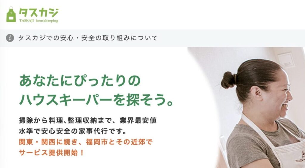 3位 | タスカジ | 個人間マッチング・ユニークなスキルを持つ人も | 1,500円〜 |