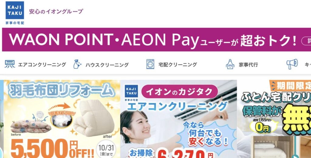 6位 | カジタク | イオングループの安心感・ハウスクリーニングも | 3,465円〜 |