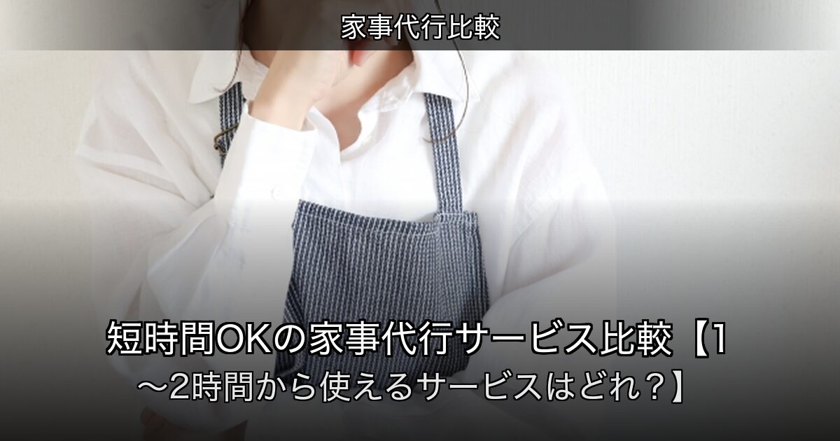 「掃除だけ1時間お願いしたい」「料理の仕込みを2時間だけ頼みたい」というニーズに応える、短時間対応の家事代行サービスを比較します。サービスによって最低利用時間が異なるため、自分の使い方に合ったサービスを選ぶことが重要です。本記事は2025年4月時点の公開情報をもとにしています。